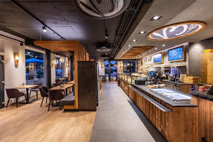 Verkauf mit Personal, unterstützt durch digitale Prozesse und effiziente Technik, wie beispielsweise digitale Menüboards.